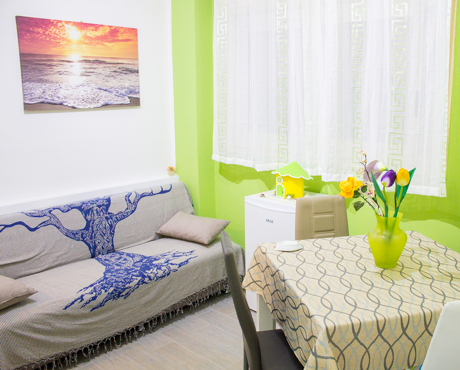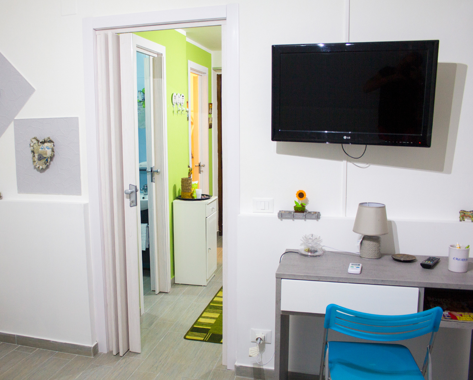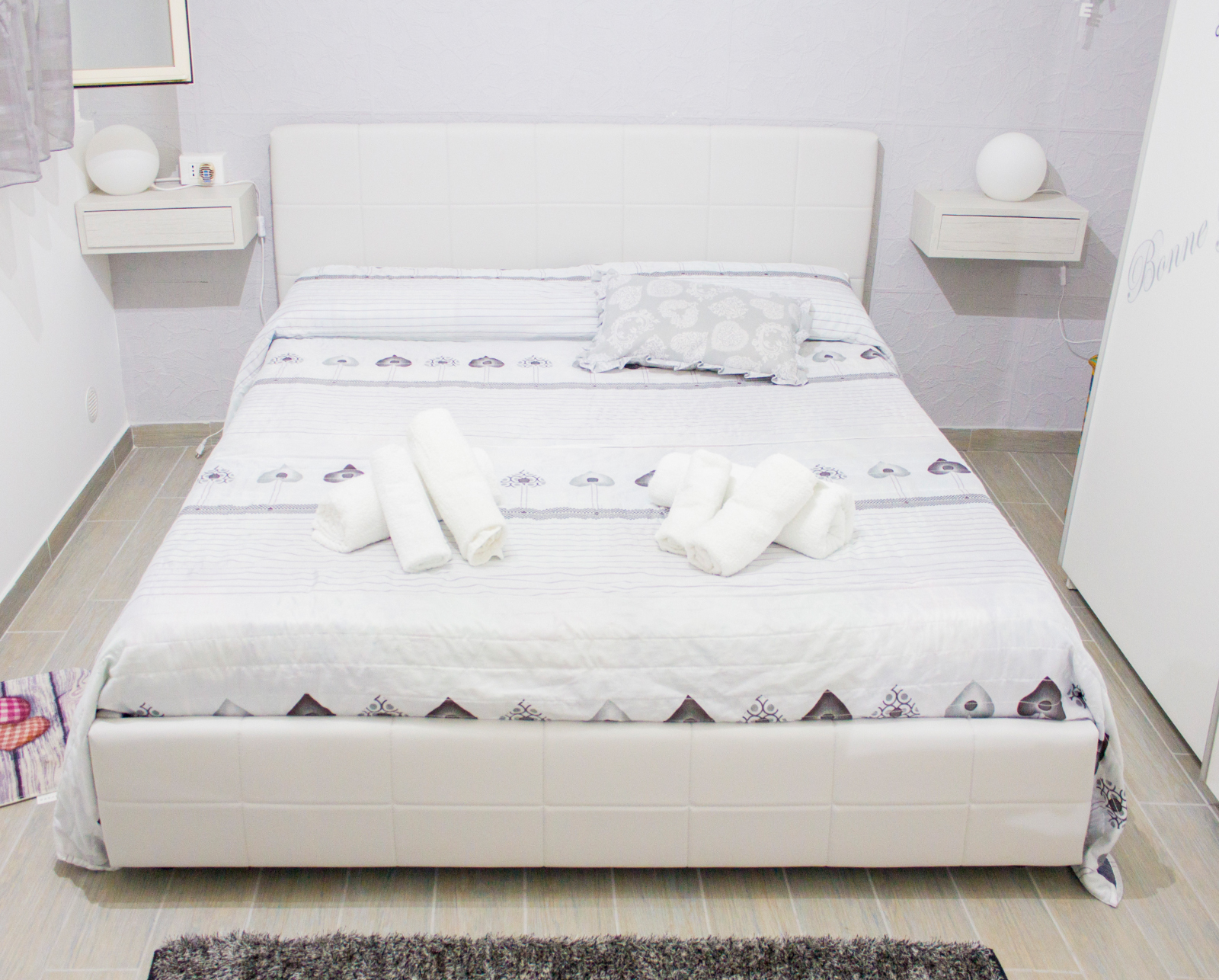 L'appartamento è climatizzato e presenta una camera da letto composta da: un letto matrimoniale ed un lettino, mentre nella zona soggiorno troviamo un divano letto singolo, per un totale complessivo di quattro posti letti all’interno dell’appartamento.
